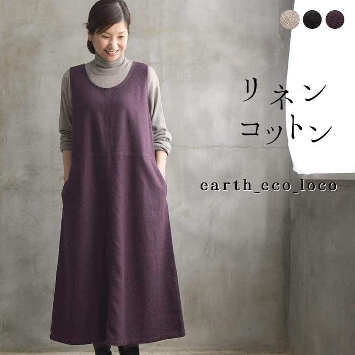 リネンコットン ワンピース 4 5番手ポコポコ 綿麻起毛 ジャンスカワンピース M 3l 春 秋 冬 レディース aw1002 E4161 Ecoloco 通販 Yahoo ショッピング